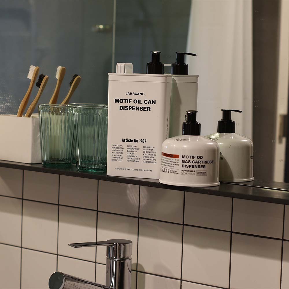 復古的機油罐造型,可直接取下頂部蓋子,更容易補充內容物,設計的提把也更容易開關瓶子,方便清洗罐內。